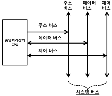 - 중앙처리장치를 중심으로 주기억장치, 외부기억장치 그리고 입출력장치 등의 기본 모듈들과 데이터를 교환하는 통로