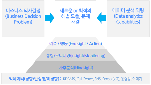 - 데이터 기반 여러 분석을 적용하여 비즈니스 문제에 새로운/최적의 문제 해결 방안을 도출