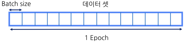 - 1 Epoch : 전체 데이터 셋을 한번 학습하는 것